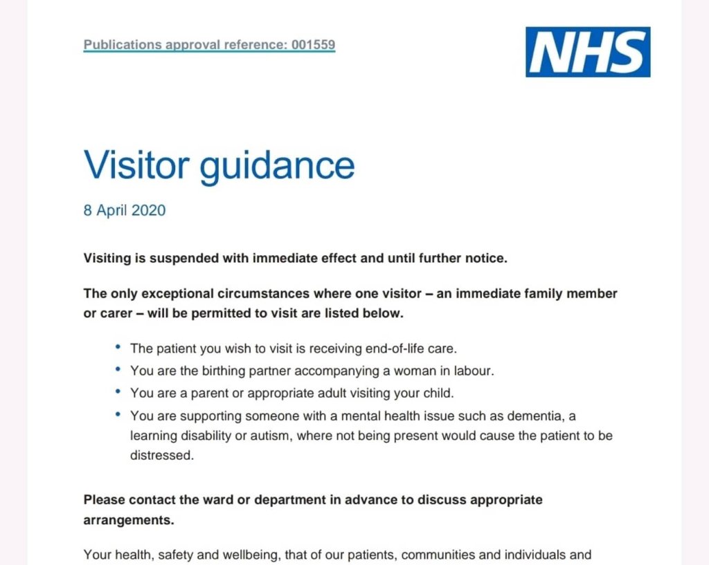 Alongside that, there is also acute pain and trauma stemming from the disconnection. This includes being unable to be with the people we love in the moments we perhaps most want to connect, when we/they are ill or dying. Current NHS visiting guidance (see below) means that only one immediate family member may visit someone in hospital if they are having end of life care. And only if they are showing no symptoms themselves, not at risk themselves.
